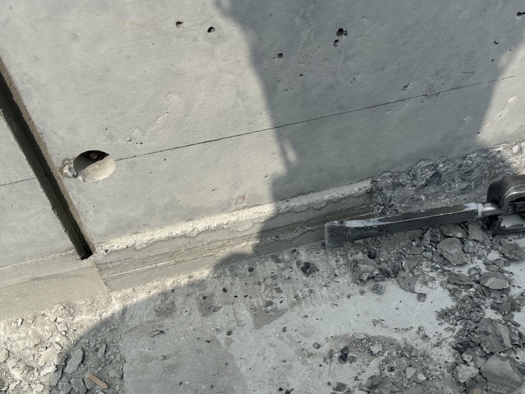 下部が出っ張っているから斫ったにもかかわらず、切付けが甘く結果的にハツる前と隙間が変わらない。